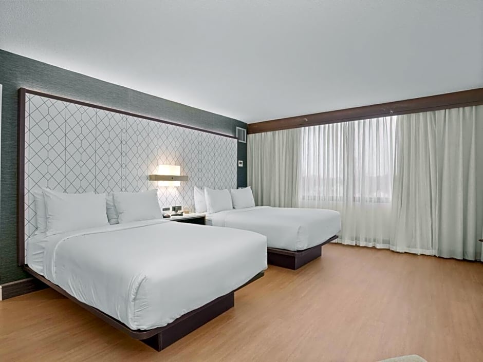 This room is furnished with 2 double beds.